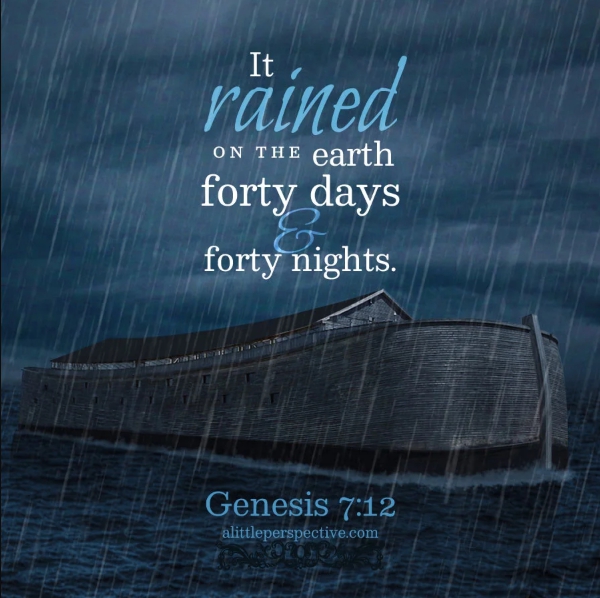 4. For after seven more days I will cause it to rain on the earth forty days and forty nights, and I will destroy from the face of the earth all living things that I have made.”